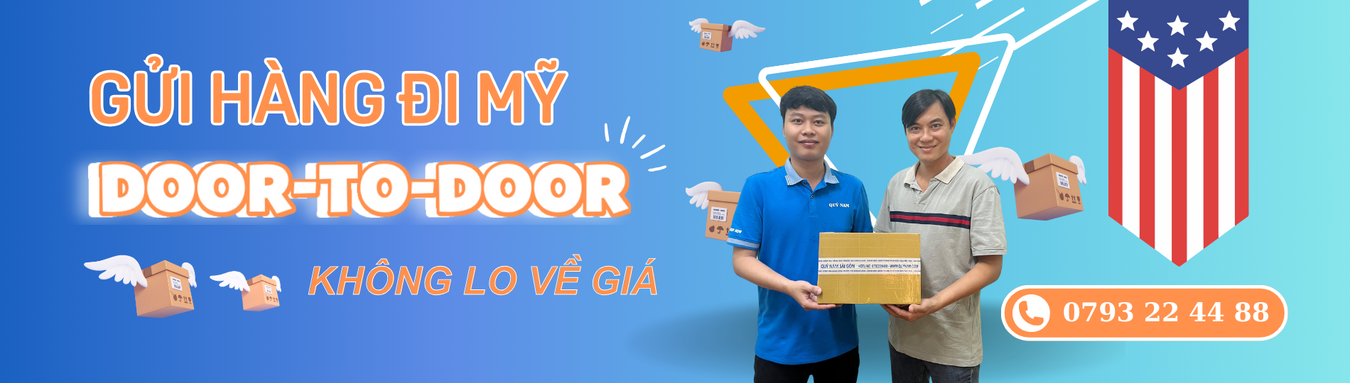 Hỗ trợ pickup tại Việt Nam và giao door-to-door tại Mỹ theo quy chuẩn tuyến.